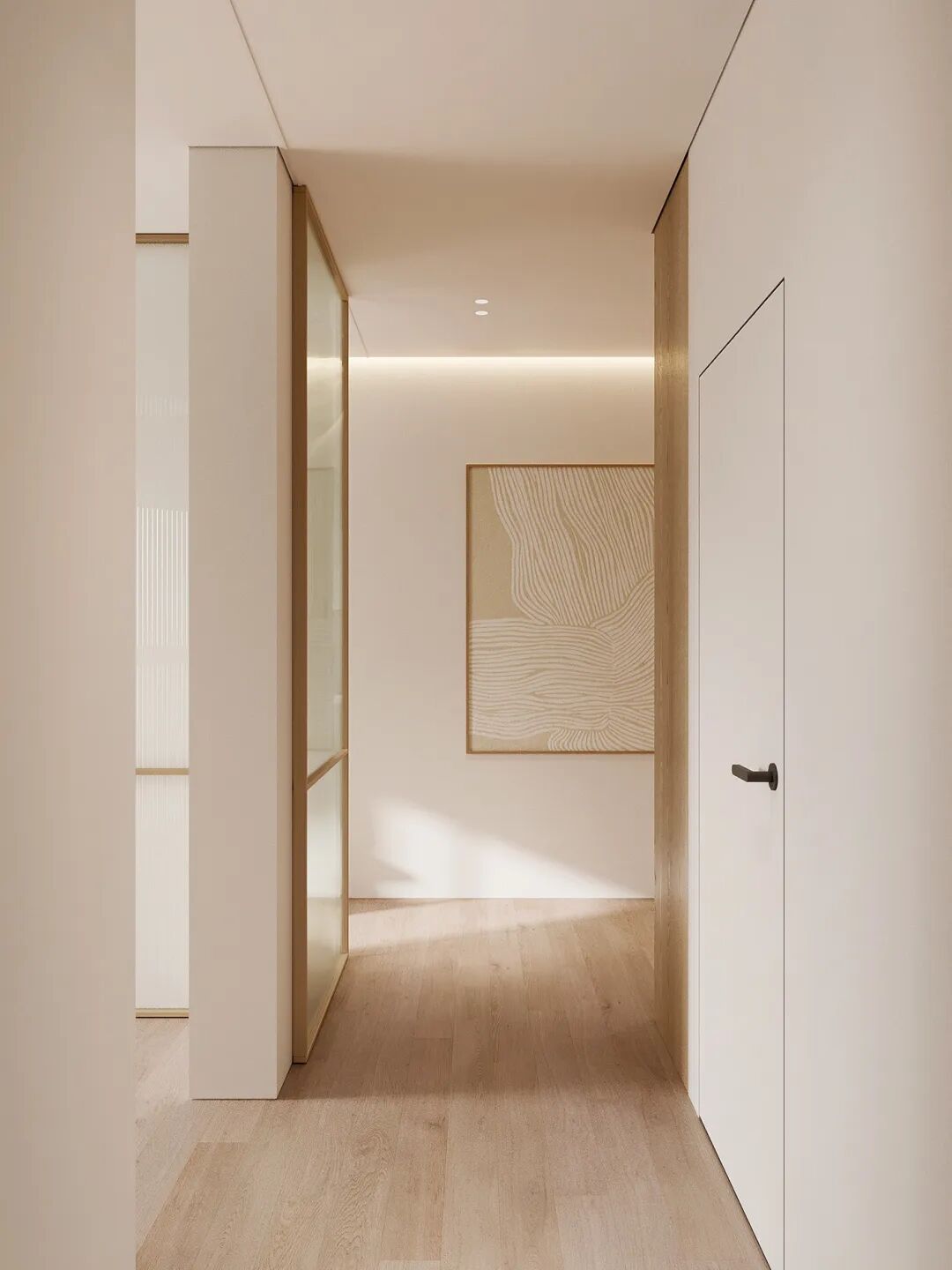 自然光为餐橱空间增添了自然的感性,在疏离之中注入活力与诗意,让业主可以尽情享受用餐时刻的欢愉。看似随意摆放的陶艺品,也在微光的倾洒下流尽无数的诗意。