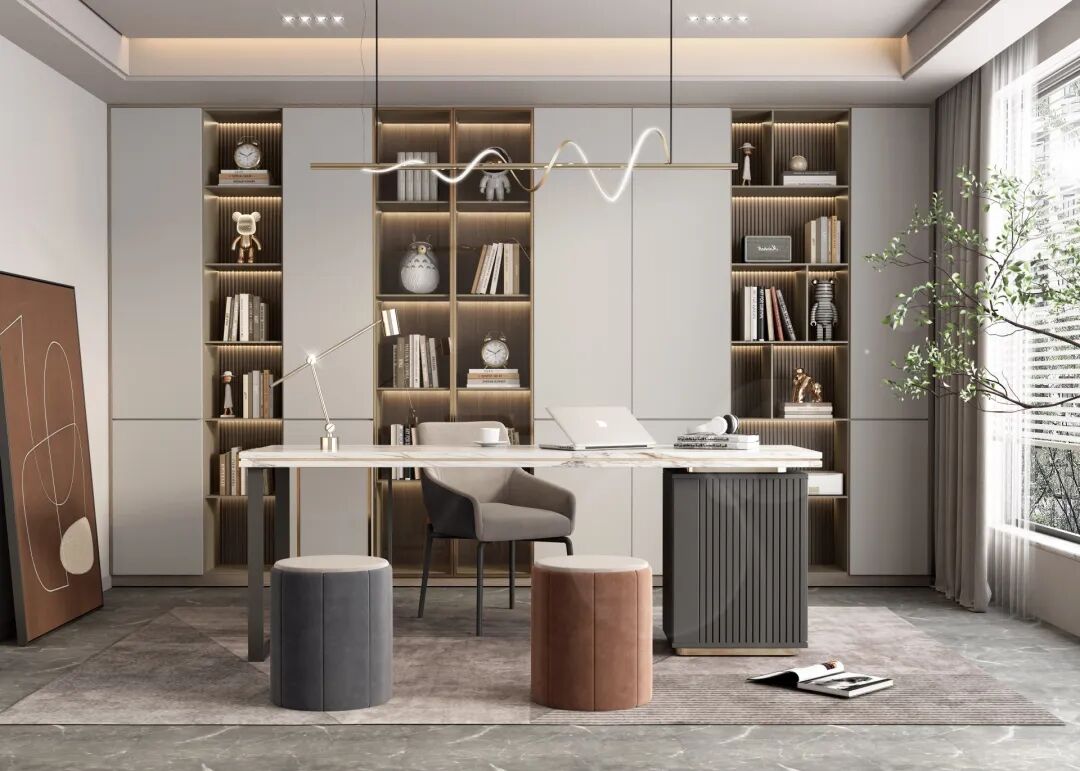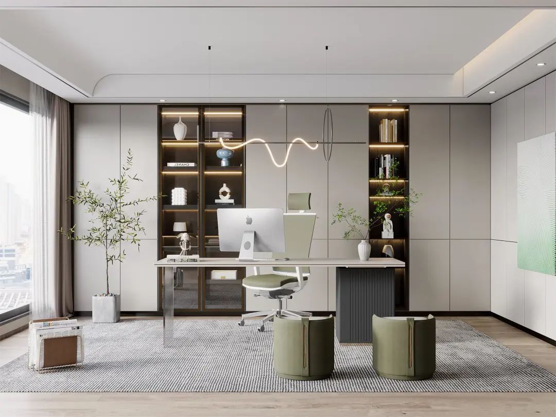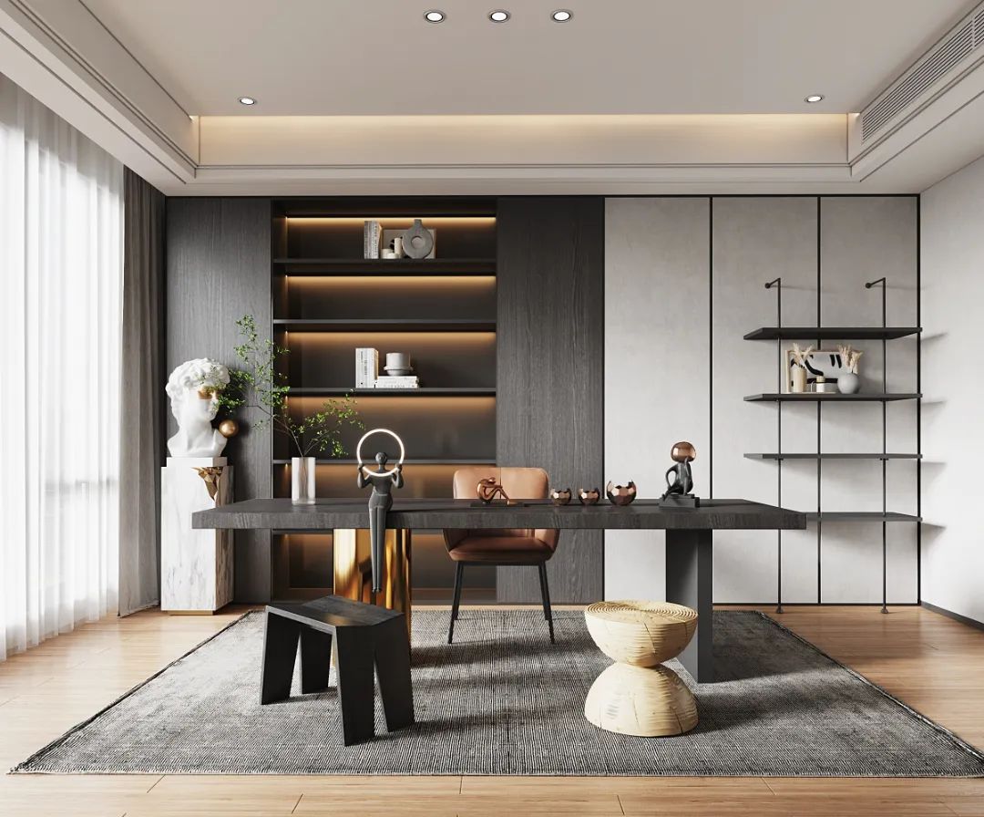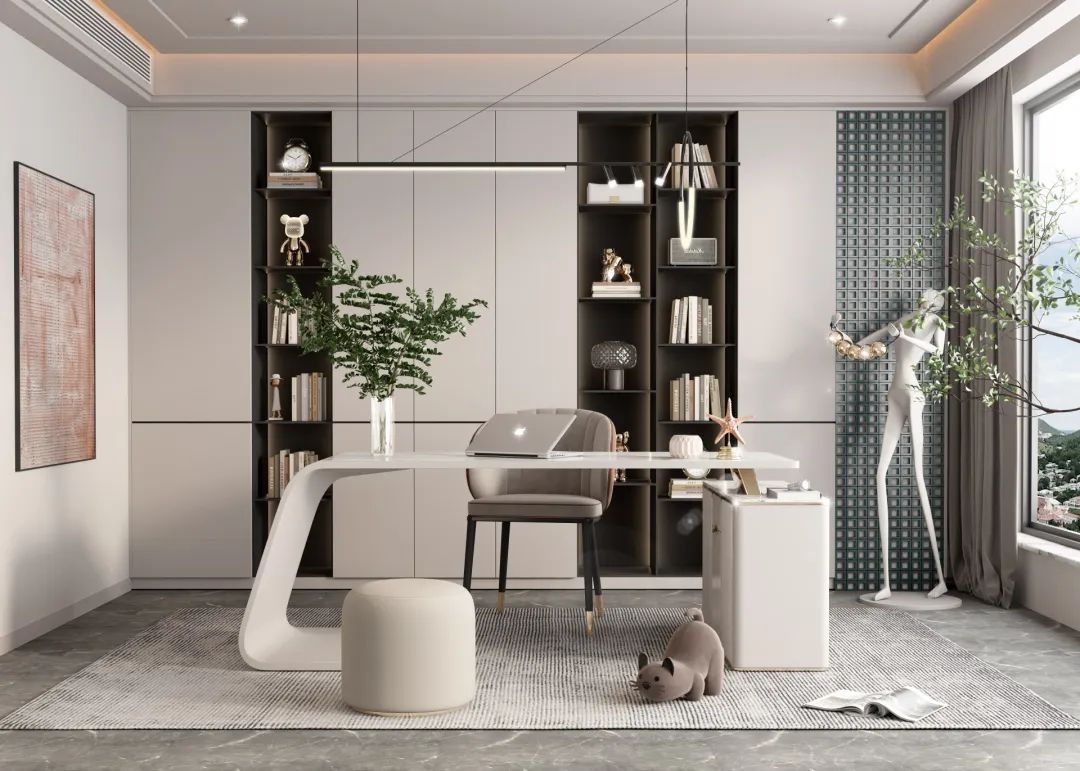 极简书柜定制通过最简约、精致的造型融入醇熟的设计理念,连接关于生活的点滴,打造纯粹、舒适且具有设计感的书房。