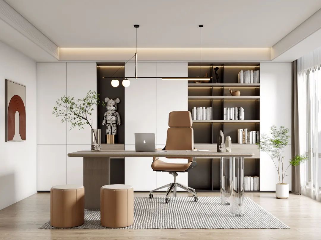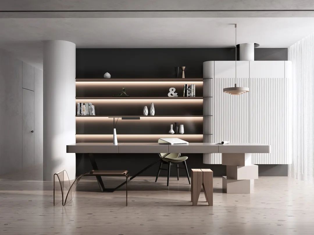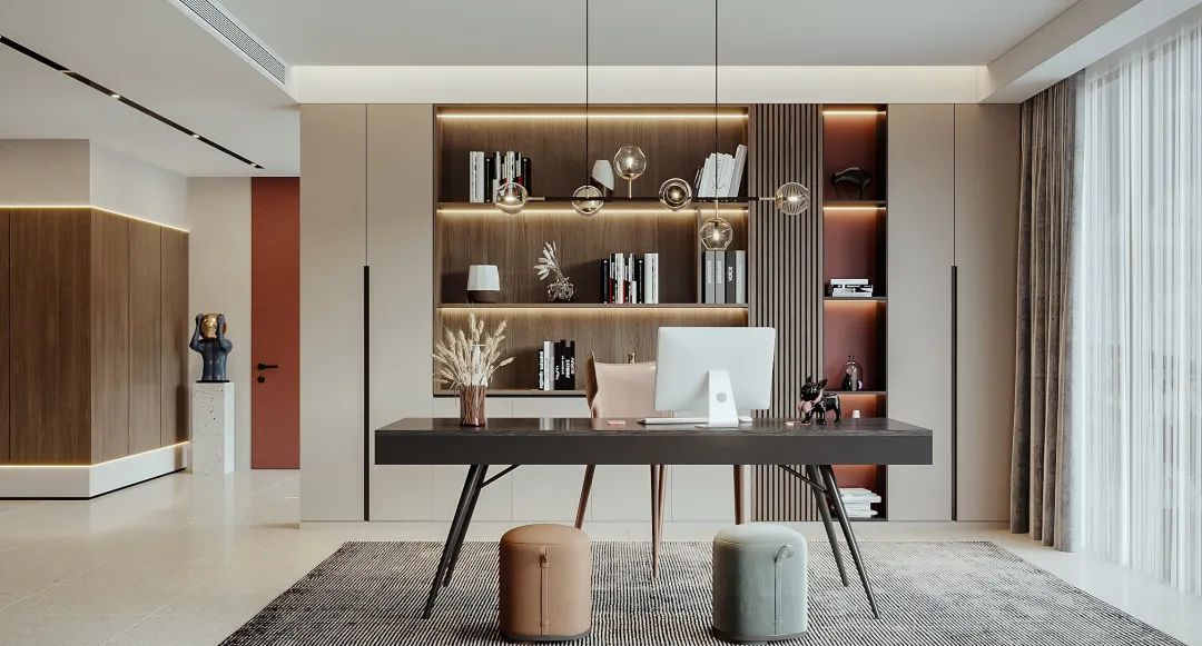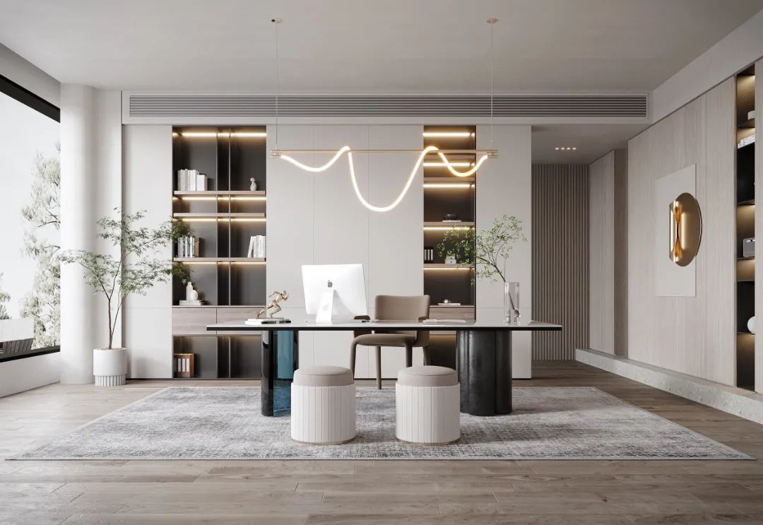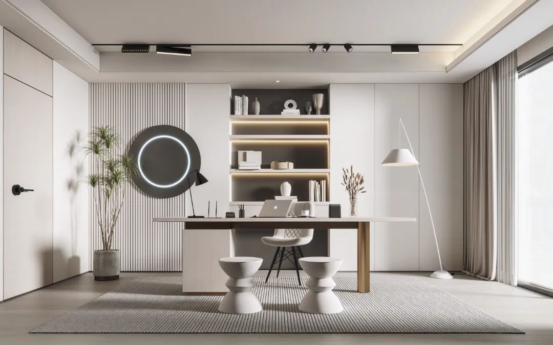 极简书柜定制通过最简约、精致的造型融入醇熟的设计理念,连接关于生活的点滴,打造纯粹、舒适且具有设计感的书房。